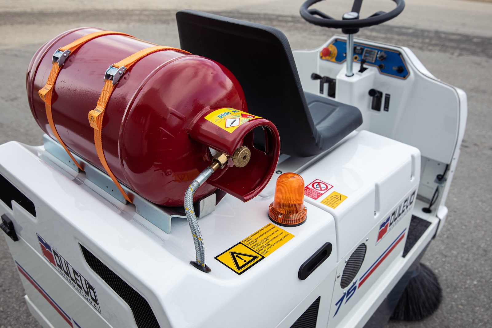La balayeuse industrielle Dulevo 75 a toutes les caractéristiques des meilleures machines industrielles. Les brosses ramassent la poussière et les déchets dans une grande cuve et le filtre Gore effectue un filtrage des poussières jusqu’à 1 micron.